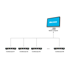 Obtenha a cascata de osciloscópio com até 16 canais através do sincronizador MOS4, reduzindo efetivamente o custo do uso de osciloscópios multicanal.