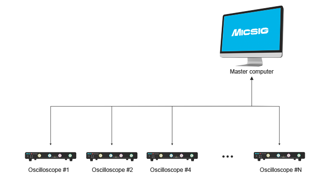 O Micsig d e série MH3 funcionam de forma completamente independente com conexão direta a monitores HDMI e mouse. Alternativamente, também é possível executar o controle de uma ou mais unidades remotamente a partir de um PC, ou via LAN pelo comando SCPI.