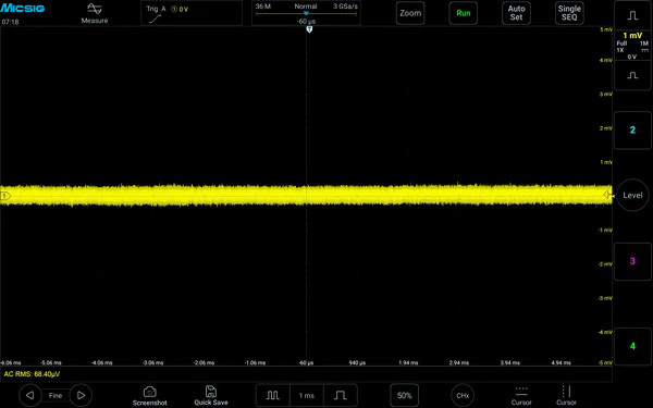 A série MO3 usa um ADC de alta resolução de 12 bits, que oferece um nível de quantização de até 4096, que é 16 vezes o de um ADC tradicional de 8 bits. Isso ajuda os usuários a analisar os detalhes das formas de onda de forma mais completa e clara.
